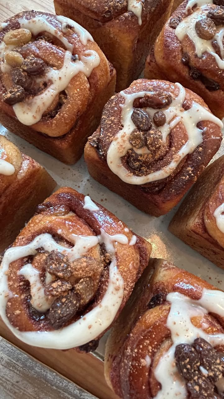 ・自家製天然酵母シナモンロール(プレーン・きなこ・檸檬バニラ・檸檬ピスタチオ・エスプレッソホワイトチョコ・人参ケーキ・メープル胡桃・大人のラムレーズン・ブリュレ・ラムレーズン&チョコレート・スパイスモリモリ・バナナ・ラムレーズンクリームチーズ・ブリュレ・ラムレーズンバナナ、レモントロワ)の中から味違いのおまかせ6個